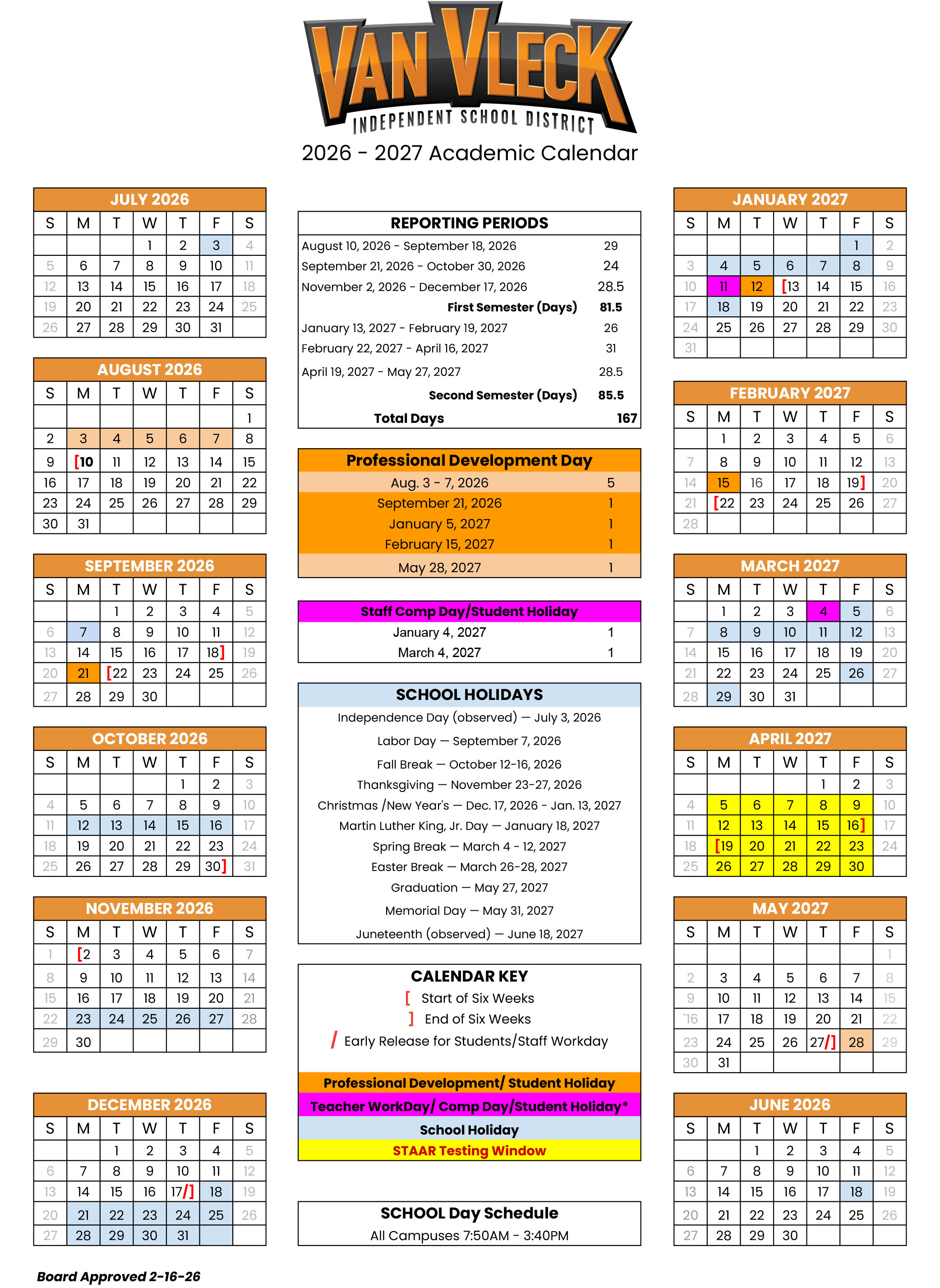 2026-2027 Approved School Calendar
